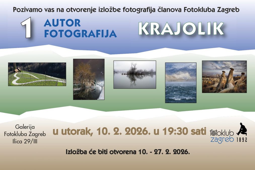 s veseljem vas pozivamo na otvorenje naše izložbe „Jedan autor – jedna fotka“ na temu landscape, koje će se održati u utorak, 10.2.2026., u 19:30, u Fotoklubu Zagreb, Ilica 29.